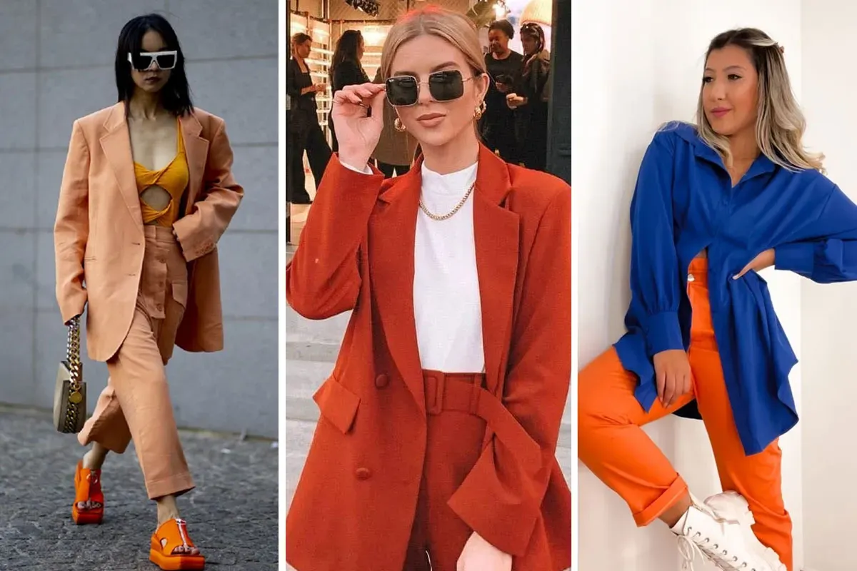 Bạn nên hạn chế kết hợp màu cam với những màu sắc quá nổi bật. Bởi khi sử dụng màu cam cùng các gam màu chói khác một cách ngẫu nhiên, tổng thể trang phục có thể trở nên kém hài hòa và mất đi sự tinh tế. Tuy nhiên, nếu bạn phối màu cam với các tông nổi bật phù hợp như hồng cánh sen hoặc xanh dương đậm thì sẽ giúp bạn thêm phần thời thượng.