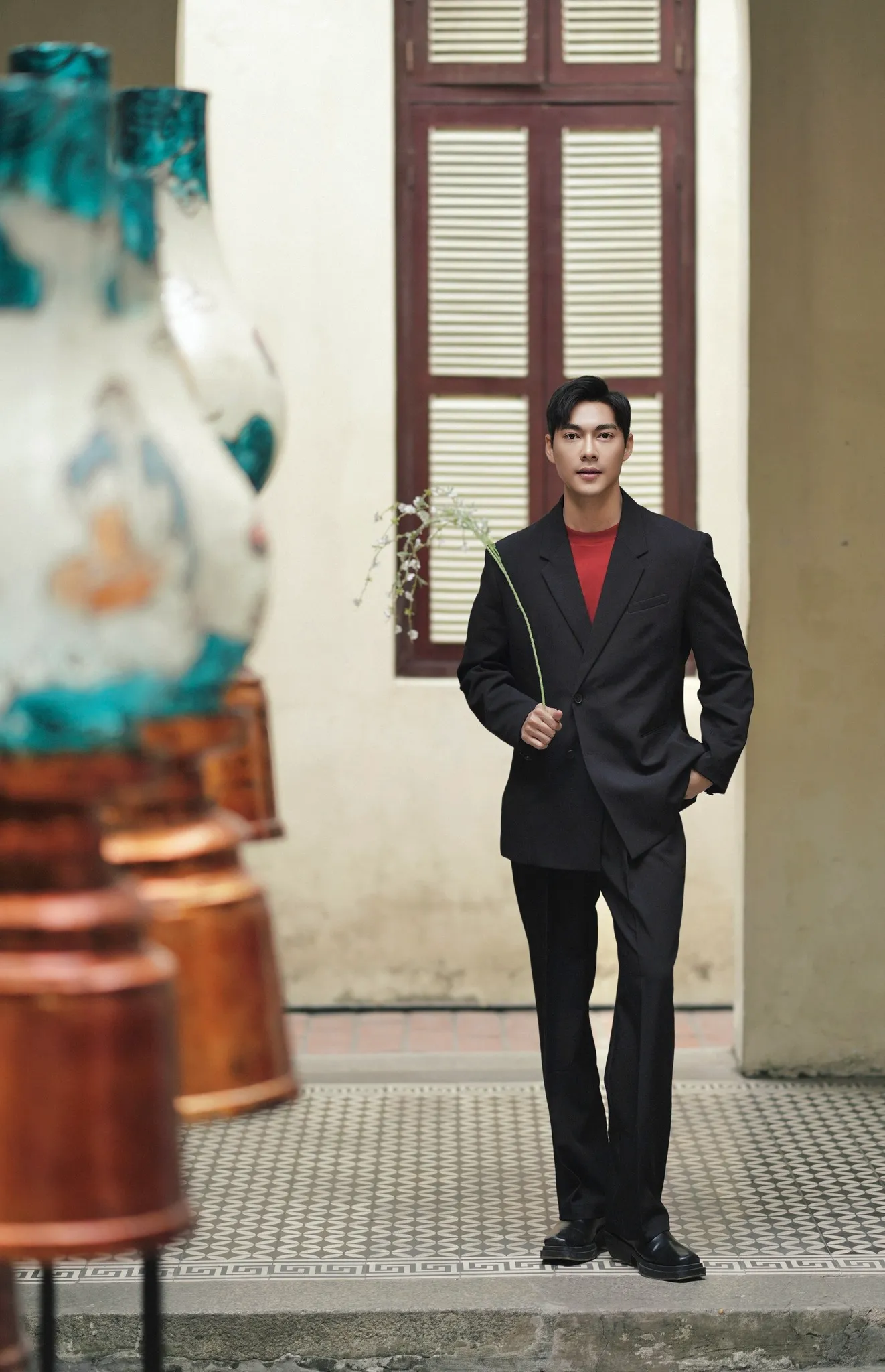 Bộ vest đen tạo cảm giác lịch lãm, ổn định và mạnh mẽ, trong khi áo đỏ bên trong mang lại điểm nhấn tươi mới và năng động (Nguồn: Routine)