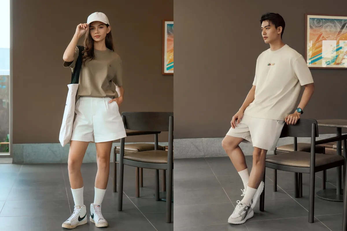 Áo thun màu xám kết hợp với quần short trắng và giày thể thao trắng, rất phù hợp với mệnh Thổ, mang lại sự yên bình và ổn định. Sự kết hợp với quần short trắng tạo nên một phong cách nhẹ nhàng, thoải mái nhưng vẫn rất năng động. (Nguồn: Routine)