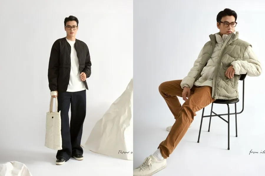 - Áo khoác chần bông trắng mang đến sự tinh tế và thanh lịch, bạn có thể kết hợp áo phao trắng với các kiểu áo sơ mi cùng quần tây hoặc quần kaki đen ống suông sẽ giúp bạn trông lịch thiệp và phong cách hơn. Ngoài ra, để sáng tạo, năng động, thoải mái và phá cách hơn trong cách phối đồ công sở nam mùa đông, bạn có thể chọn một chiếc áo khoác chần bông sát nách.